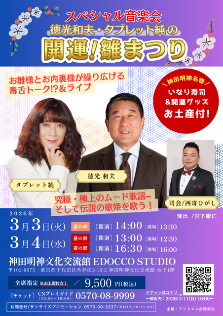タブレット純 大いに歌う~中川博之作品集~ 2025年12月11日 〇アルバム「タブレット純 大いに歌う~中川博之作品集」発売日:2025年11月26日(水) 定価:¥3,000(税抜¥2,727) 全10曲入り 日本コロムビア