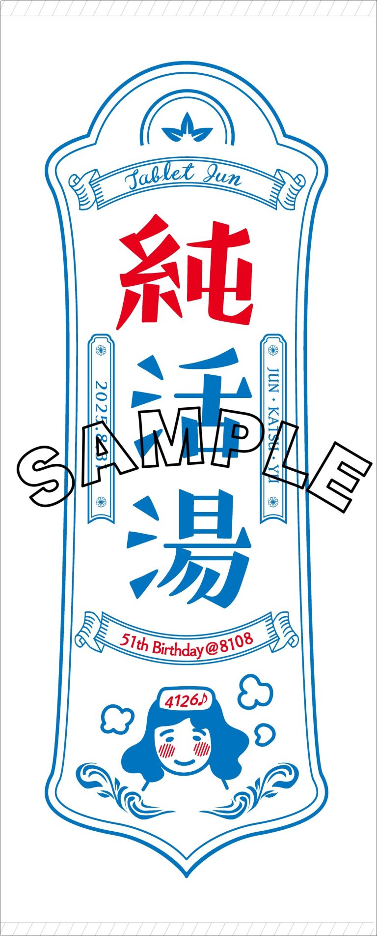 復刻 純活湯タオル 51歳誕生日バージョン  34cm×84cm    ¥1,500